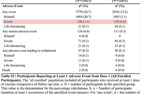 Is it worse if twelve people have severe adverse vaccine events or one person has severe COVID-19?